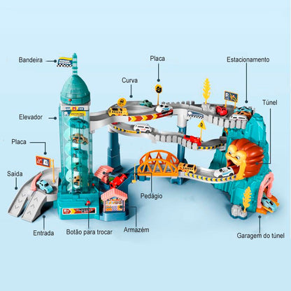 Pista De Carrinhos Elétrica + 4 Carrinhos