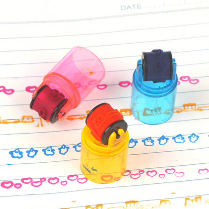 O Carimbo Roller é ideal para quem quer deixar anotações mais divertidas e coloridas. A tinta é lavável e não é tóxica.