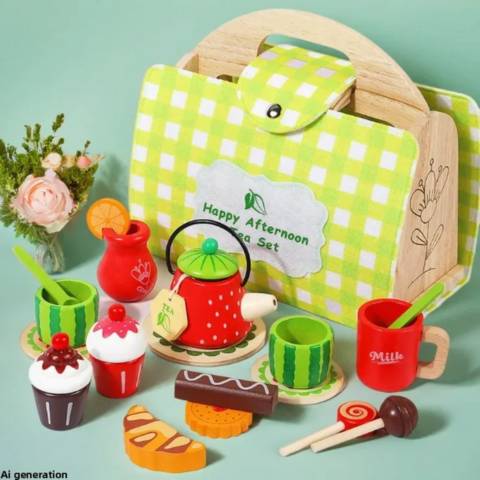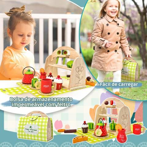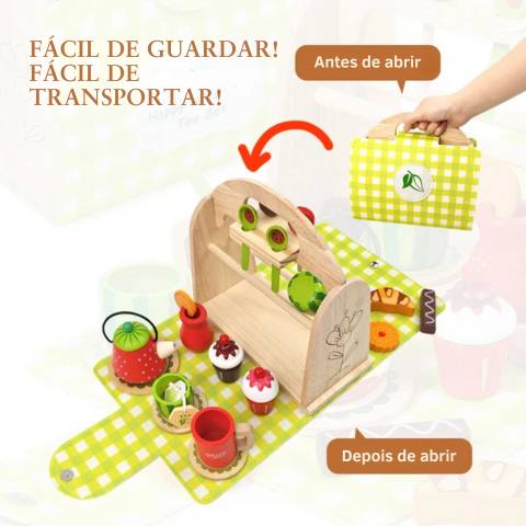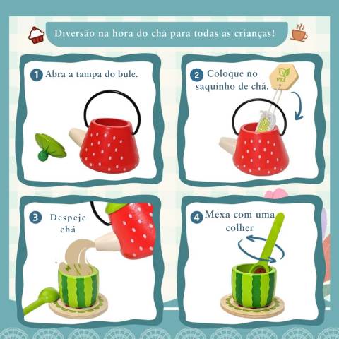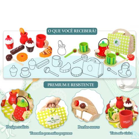 Com esse lindo conjunto, as crianças podem preparar chás, servir bolinhos e viver momentos cheios de criatividade e diversão. Feito em madeira de alta qualidade, o brinquedo é colorido, resistente e cheio de detalhes encantadores! 💖