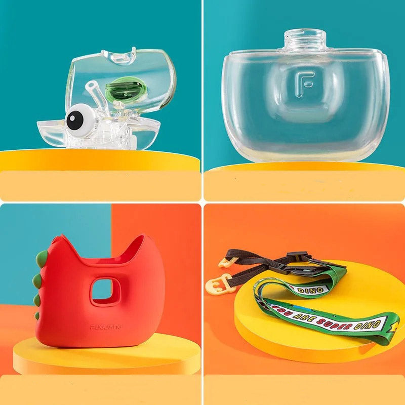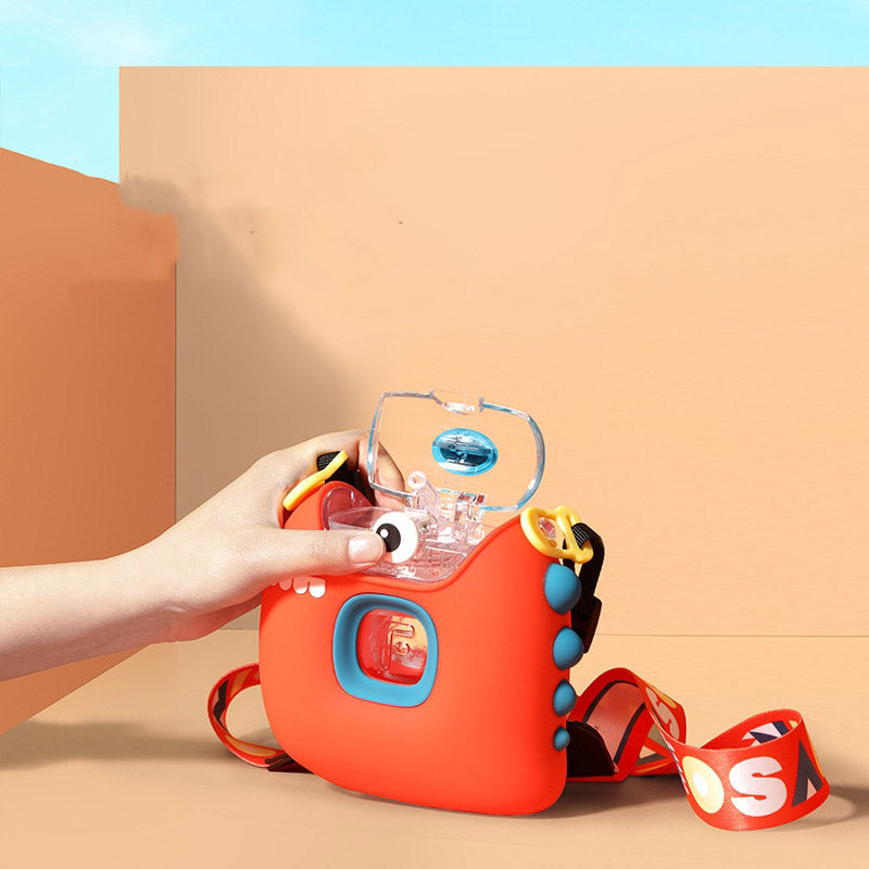 - Um garrafinha d'água em formato de câmera com alça