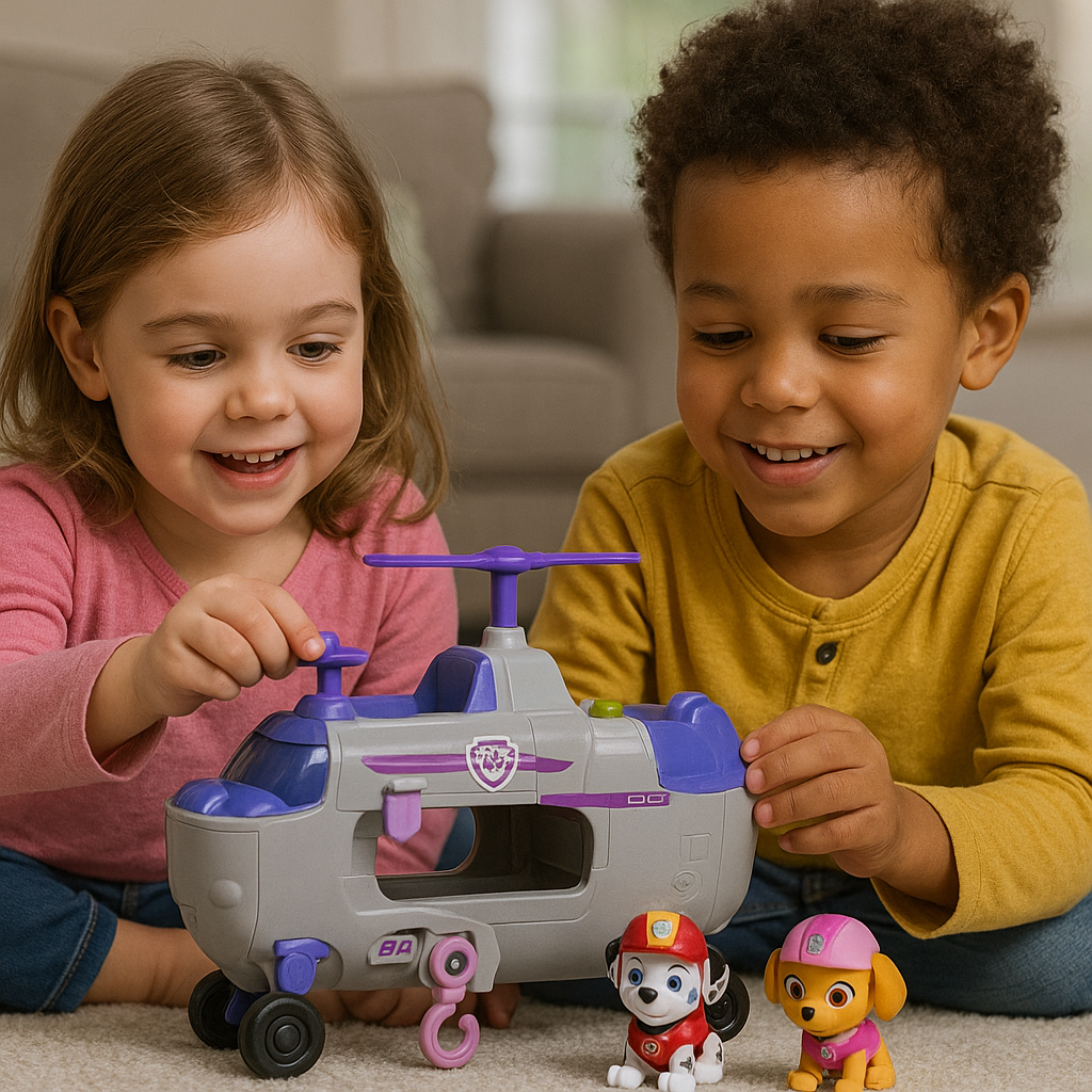 Prepare-se para missões cheias de ação com o incrível helicóptero da Patrulha Canina! Ele vem com hélices duplas, gancho de resgate e espaço para levar os filhotes em novas aventuras. 🌟