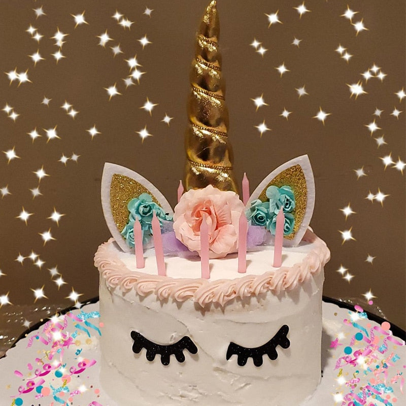 - 1 Enfeite de Bolo (Cílios, orelhas, chifre dourado e flores)