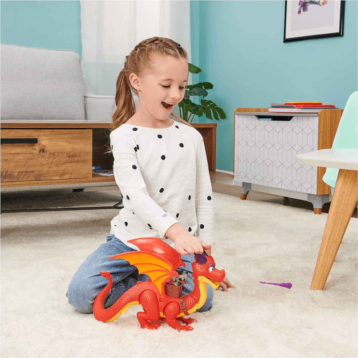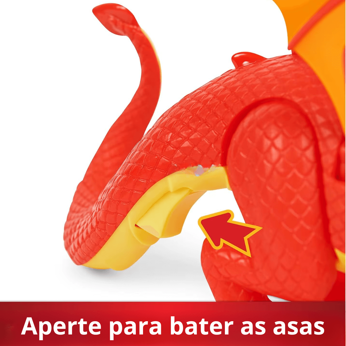 O dragão dispara projéteis para defender o castelo e proteger seus amigos. Basta pressionar o botão da cauda para ativar o bater de asas e liberar o poder!