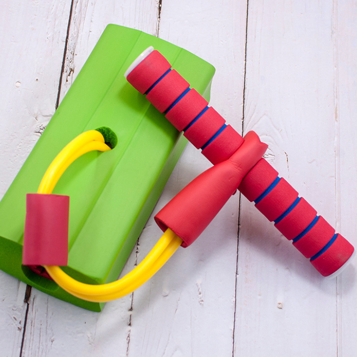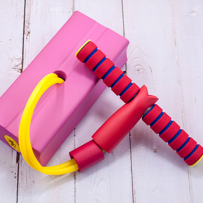 Pula Pula com Elástico é um pula pula flexível e elástico com acolchoamento na parte inferior, destinado a dar às crianças a emoção de usar um pula pula de uma forma segura e protegida.